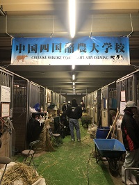 参加した学生 富士山を望む出品牛舎 横断幕を掲げPR