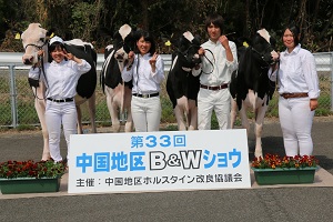 中国5県及び兵庫県から130頭が出品され、当大学校から未経産牛3頭を出品しました。